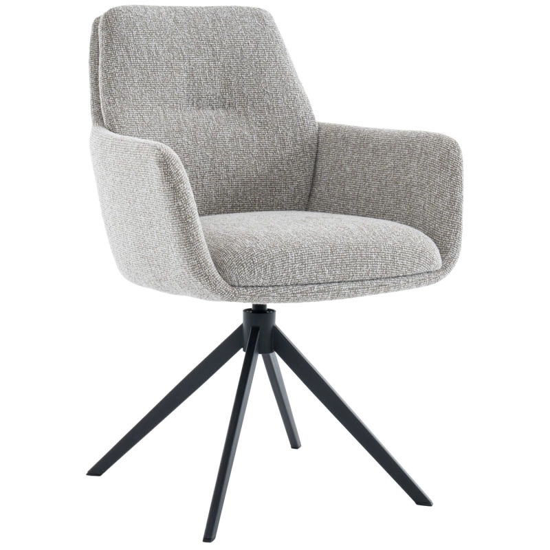 Armstoel Jasmia is met zijn moderne uiterlijk een echte parel voor in je eetkamer. Deze tijdloze eetkamerstoel is uitgevoerd in een prachtige taupe kleurige bouclé stof en een zwart metalen onderstel inclusief terugdraaimechanisme. Hierdoor zal de stoel altijd weer naar zijn oorspronkelijke positie terugdraaien.