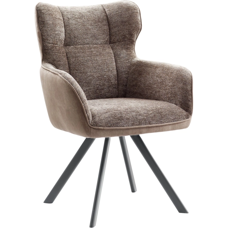 Deze eetkamerstoel heeft een luxe duo-stoffering. Aan de binnenkant van de rug en de zit een zachte comfortabele bekleding en aan de buitenzijde een gladde microvezelstof. De rug van de stoel is voorzien van een mooi vierkant stiksel en rondom is de kuip afgewerkt met een prachtige bies. De metalen poot in grafietkleur is draaibaar. Dit alles maakt model Joah een echte eyecatcher in jouw interieur!