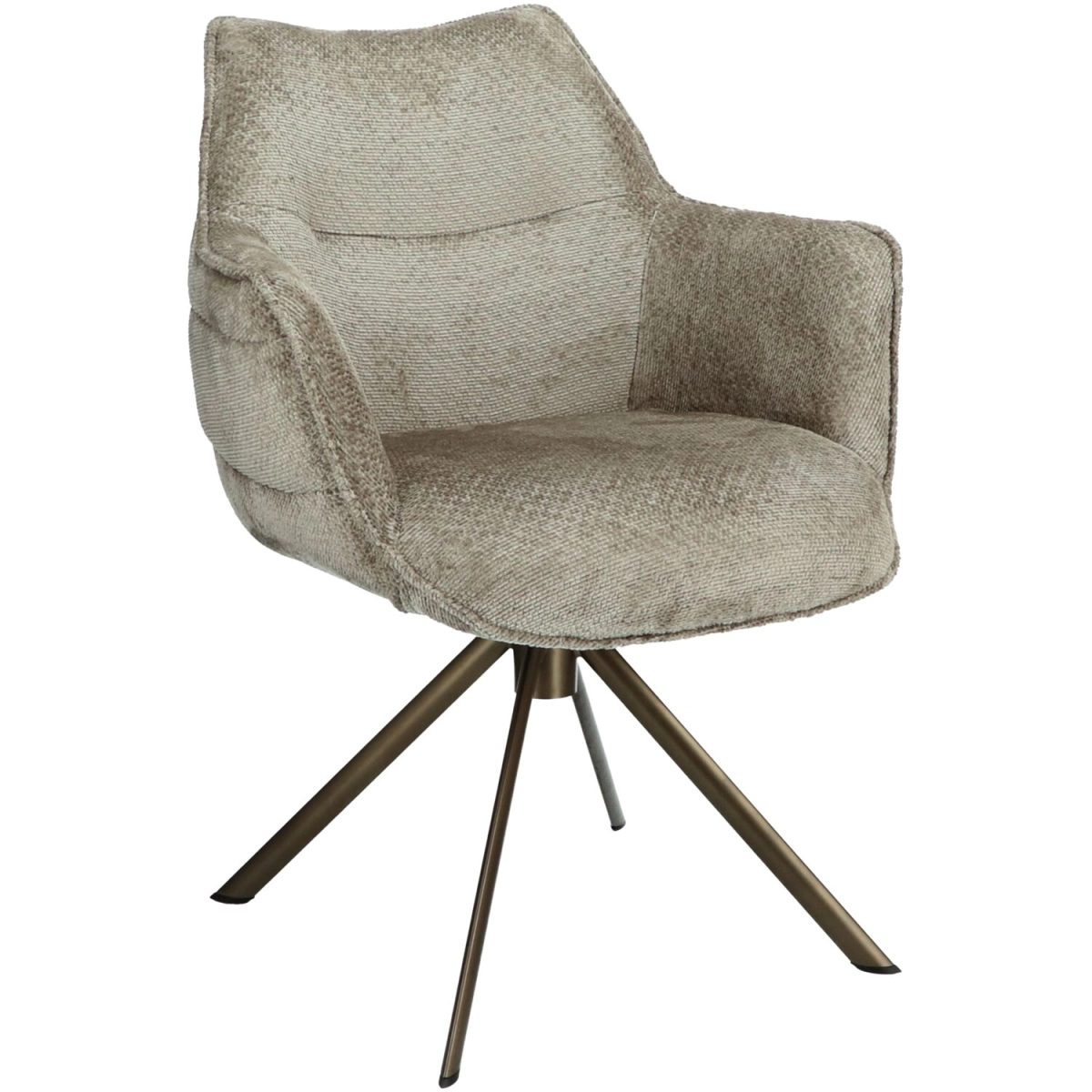 De stof Movie is een grof geweven velours achtige, die zacht aanvoelt. Het strake onderstel is uitgevoerd in een prachtige bronskleur. Deze is draaibaar en voorzien van een terugdraaimechanisme. Hierdoor kun je gemakkelijk van tafel weglopen, waarna de stoel weer terugdraait in zijn oorspronkelijke positie. Dat is pas handig!