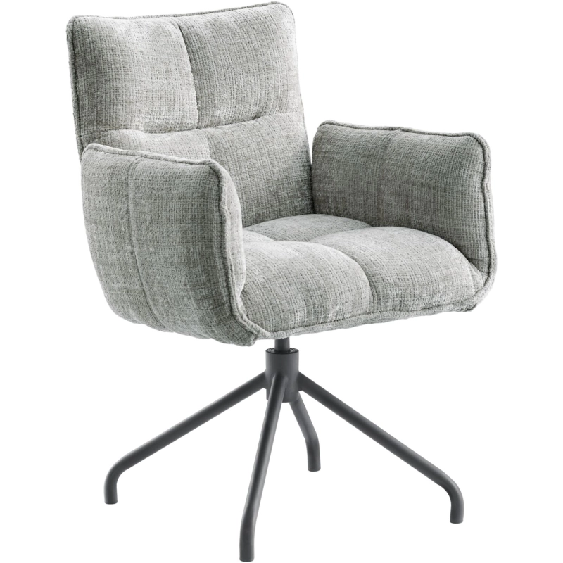Onze armstoel Novira is voorzien van een extra dikke laag foam om een geweldig zitcomfort te waarborgen. De prachtige stof Cremona in de kleur 96-grijs, maakt het plaatje helemaal compleet. Het 360 graden draaibare onderstel is uitgevoerd in zwart metaal.
