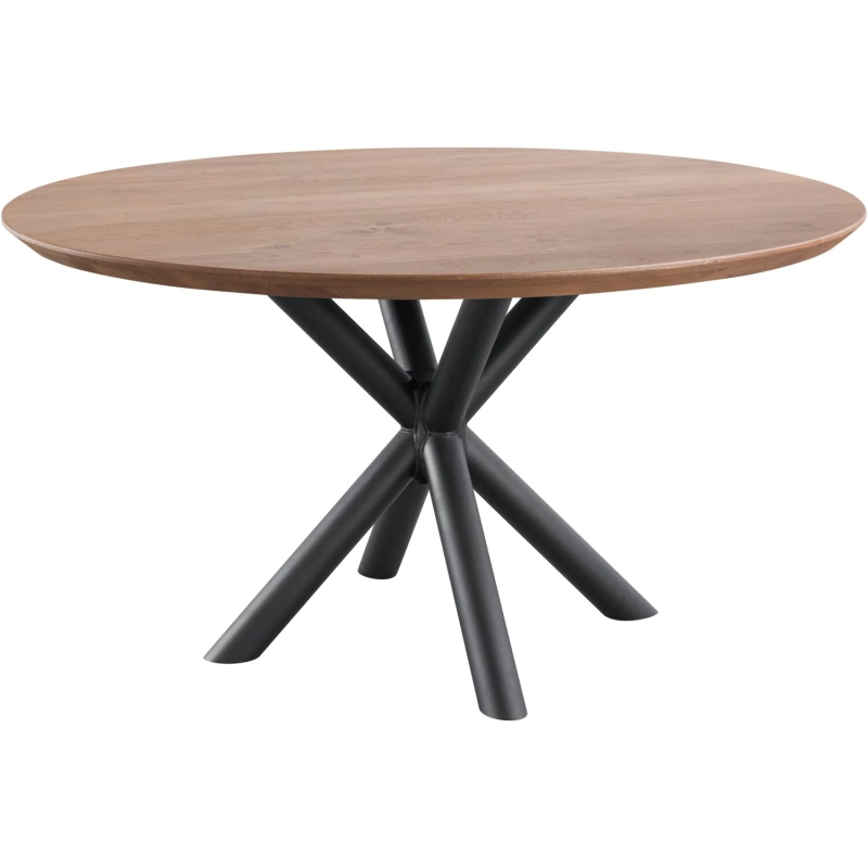 Eettafel Taranto is er eentje met 1001 mogelijkheden. Deze bruine eikenhouten tafel is voorzien van een rond bovenblad en zwart metalen matrixpoot wat de Taranto een stoere look geeft. Met een doorsnede van 140 cm kun je er gemakkelijk 4 tot 6 personen aan kwijt.
