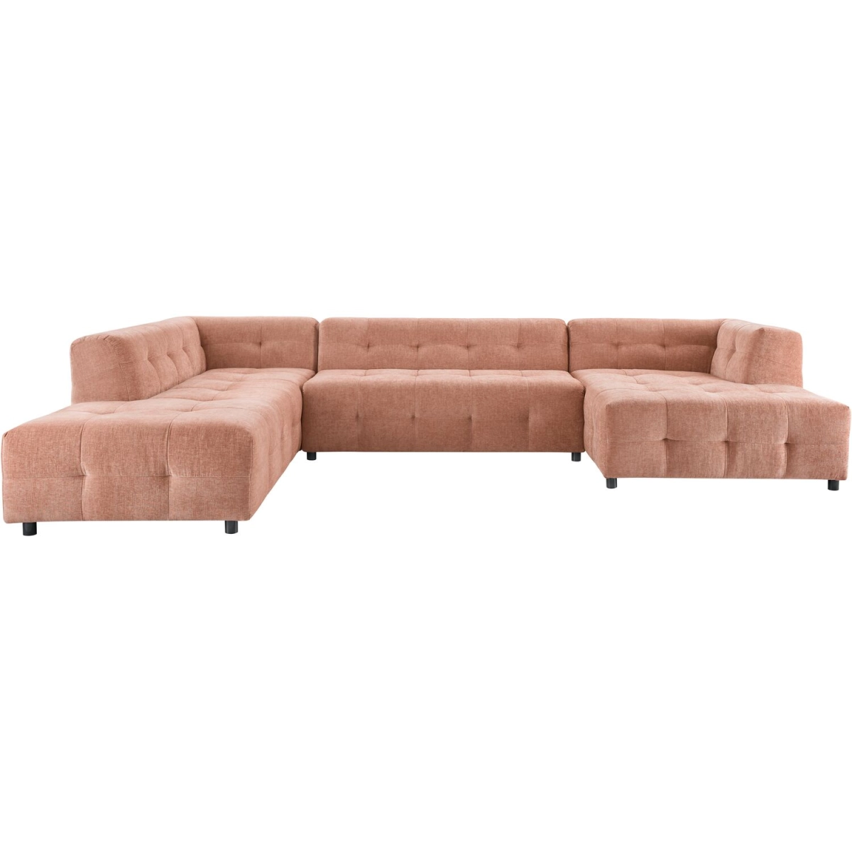 Elementenbank Durina is uitgevoerd in een zachte roze stof en beschikt over zwarte kunststof poten. De mooie vierkante stiksels op de zit- en rugkussens geven de bank een elegante uitstraling. Dankzij de doorgestoffeerde zijkanten en de inklapbare verbindingsstukken zijn alle elementen vrijstaand in de ruimte te plaatsen. De zitkussens zijn uitgevoerd in hoogwaardig HR-schuim in combinatie met nosagvering, wat zorgt voor een uitstekend zitcomfort.