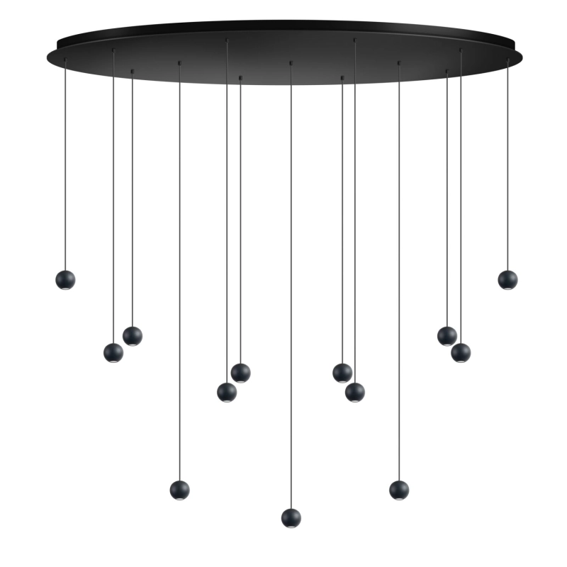 Uitgevoerd in zwart metaal, 13 lichts.