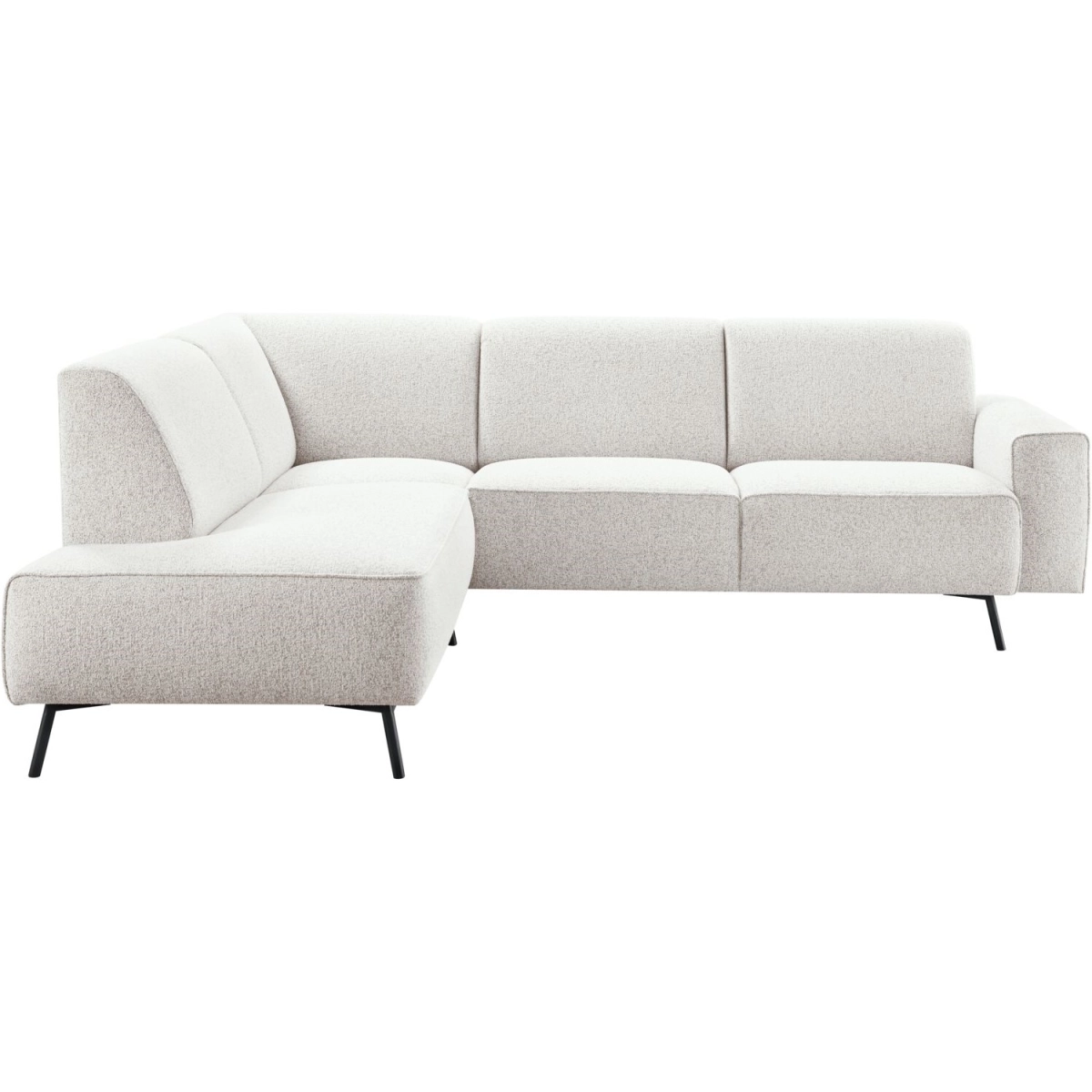 1 zits met eiland links + hoekelement links + 2,5 zits arm rechts uitgevoerd in stof puente 22-silver met zwart metalen poten.