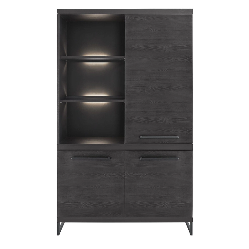 Uitgevoerd in Lamulux in de kleur noir decor met 3 deuren en 3 open vakken. | Exclusief LED-verlichting, deze is apart bij te bestellen.