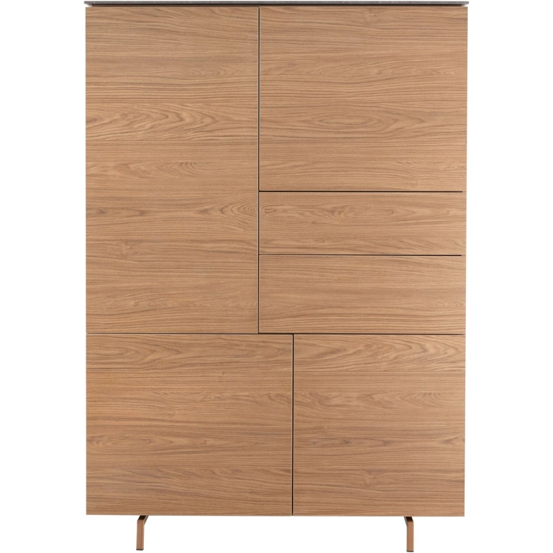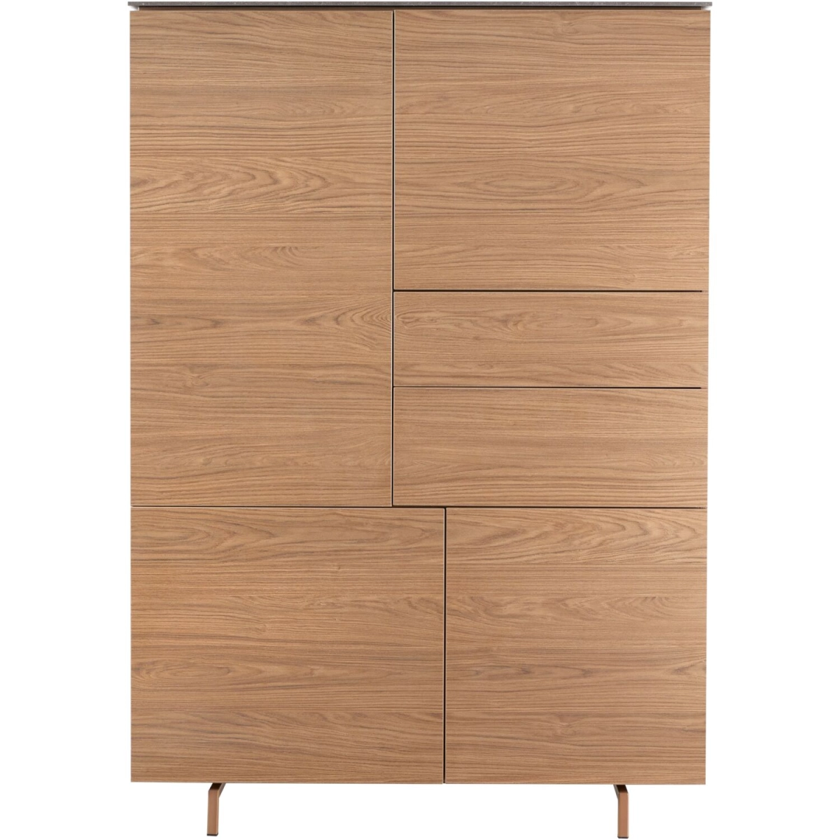 Opbergkast Stonara is 124 cm breed en 170 cm hoog en is uitgevoerd zonder handgrepen. De laden en deuren zijn voorzien van een push-to-open systeem. De ladenfronten zijn standaard uitgevoerd in Lamulux kleur Hazel, optioneel is er tegen meerprijs een extra set ladefronten te bestellen in marmerstructuur. Zo kun je de kast thuis aanpassen in uitstraling. Opbergkast Stonara is onderdeel van een meubelserie en daarom goed te combineren met andere meubels uit dit woonprogramma.