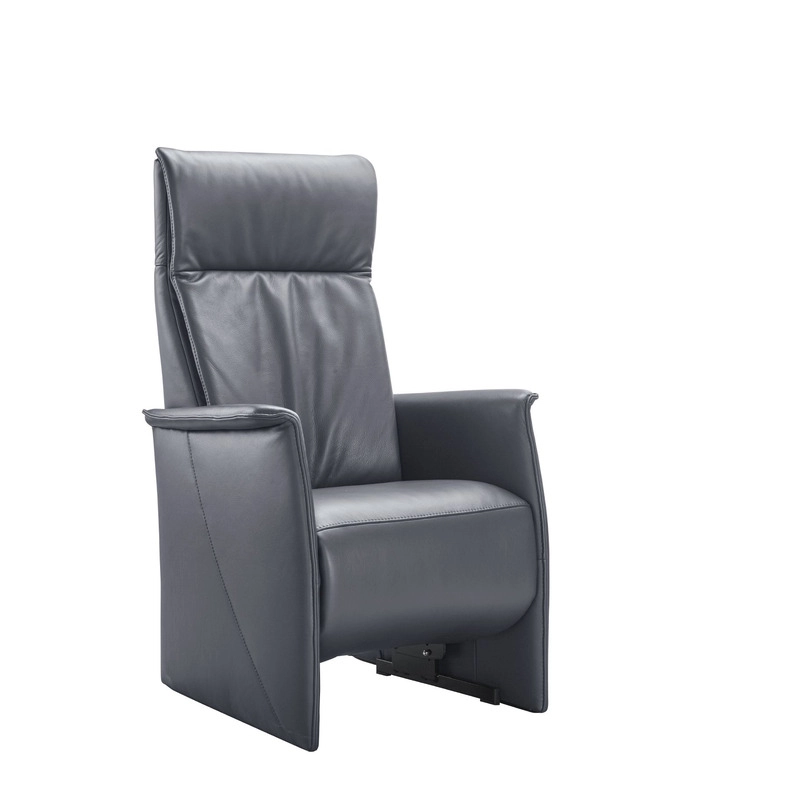 XL uitvoering, uitgevoerd in toledo antraciet met horizontale naad in de rug (type D), armleuning 1 (doorlopend), pocketvering in de zitting, elektrisch verstelbaar d.m.v. 2 motoren incl. sta-op functie, accu en kunststof zwarte pootjes.