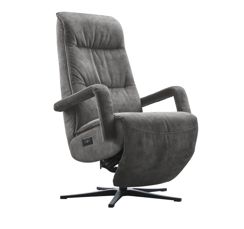 Uitgevoerd in stof adore antraciet, elektrisch verstelbaar d.m.v. 2 motoren, inclusief accu, verstelbare hoofdsteun en met een zwarte metalen 5-teens draaivoet.