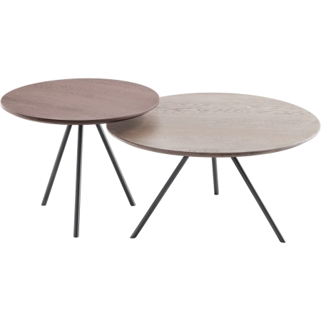 Salontafel Baldara is uitgevoerd in gelakt eiken, kleur Slate en heeft een afgeschuinde bladrand en metalen poten.