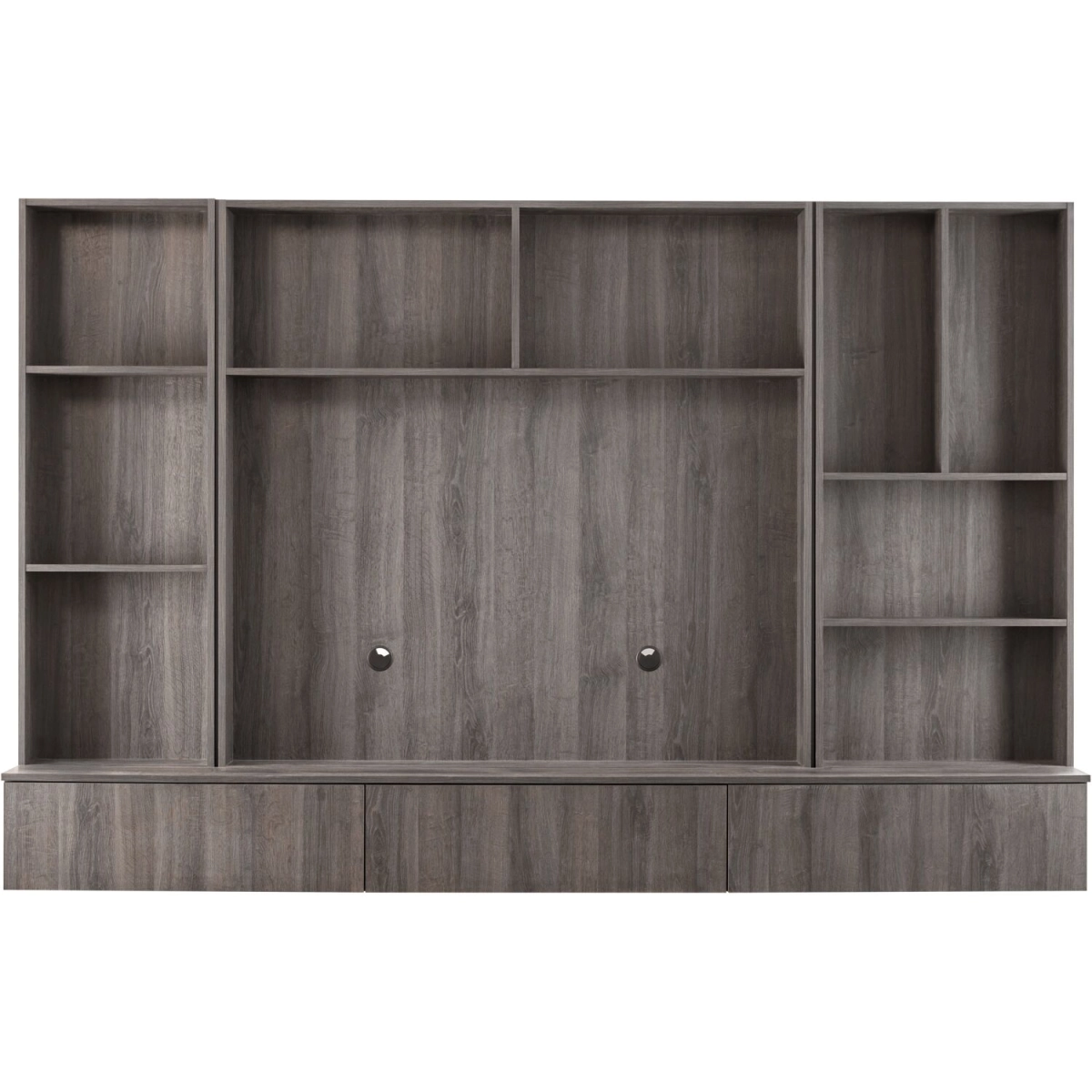 TV-kastenwand Arinta is onderdeel van een meubelserie met een eigentijdse en moderne uitstraling. Deze hangende TV-wall bestaat uit 3 kleppen die voorzien zijn van soft-close en push-to-open systeem en 10 open vakken. Dankzij de hoogwaardige Melamine afwerking in de kleur Sherman Oak is Arinta eenvoudig in onderhoud.