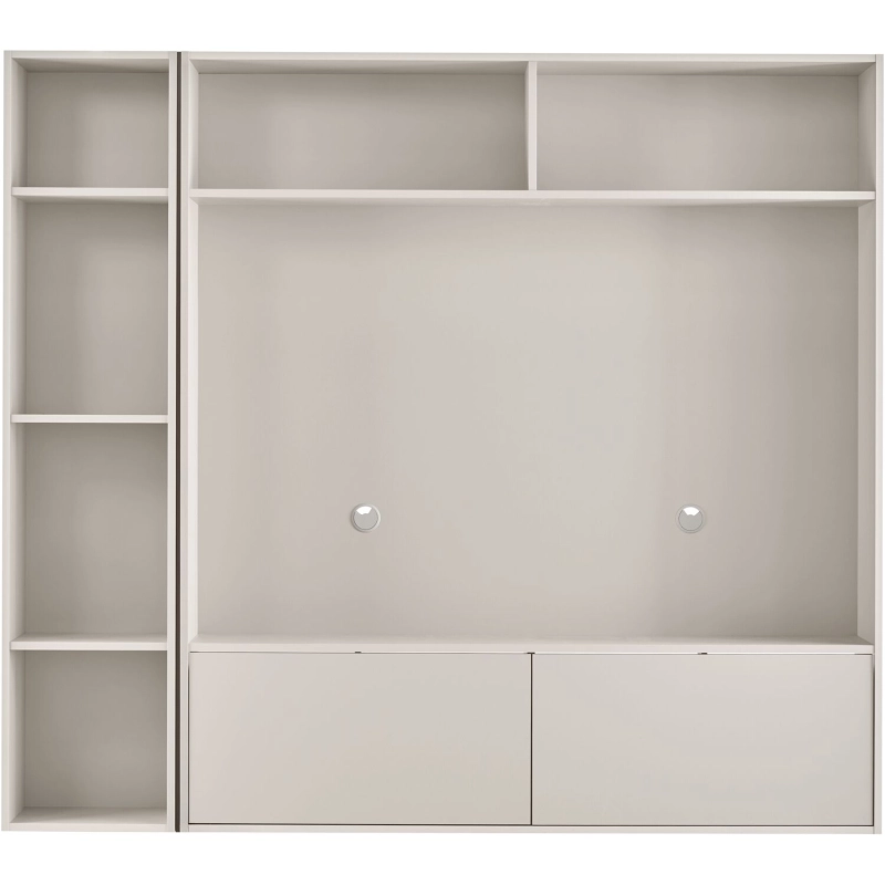 TV-kastenwand Arinta is onderdeel van een meubelserie met een eigentijdse en moderne uitstraling. Deze hangende TV-wall bestaat uit 2 kleppen die voorzien zijn van soft-close en push-to-open systeem en 7 open vakken. Dankzij de hoogwaardige Melamine afwerking in de kleur Pebble Grey is Arinta eenvoudig in onderhoud.