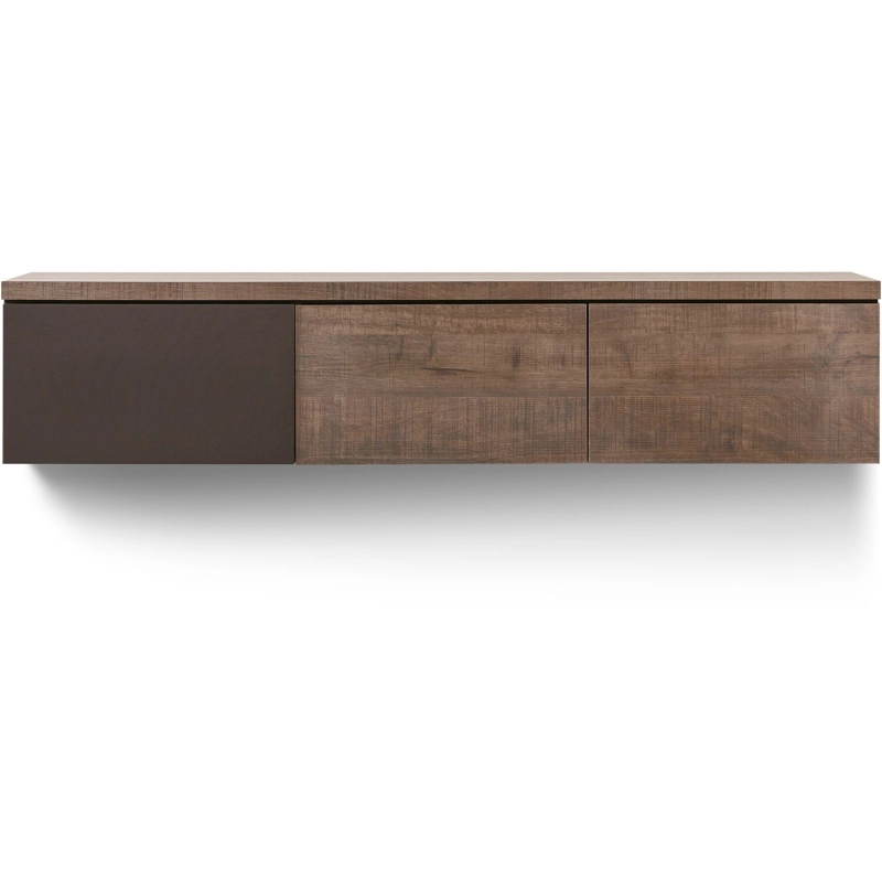 Model Lorina kenmerkt zich door zijn moderne en tijdloze uitstraling. Dit hangende TV-meubel bestaat uit 3 kleppen inclusief speakerdoek die voorzien zijn van een handig push-to-open systeem. Dankzij de hoogwaardige Lamulux afwerking in Dark Mango heeft Lorina de uitstraling en het gevoel van echt hout, maar is zeer kras-, slijt- en stootvast en makkelijk in onderhoud.