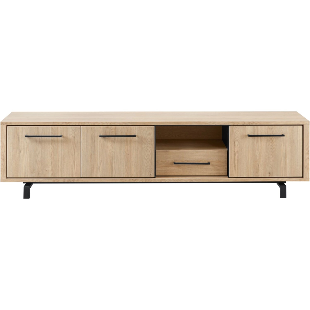 TV-meubel Wesara is onderdeel van een kastenserie met een tijdloze uitstraling. Dit TV-meubel is voorzien van 3 deurtjes, 1 lade, 1 open vak en zwart metalen pootjes die zorgen voor een zwevende look. Dankzij de onderhoudsvriendelijke Lamulux afwerking, geniet je van de warme uitstraling van echt hout zonder in te leveren op gebruiksgemak.