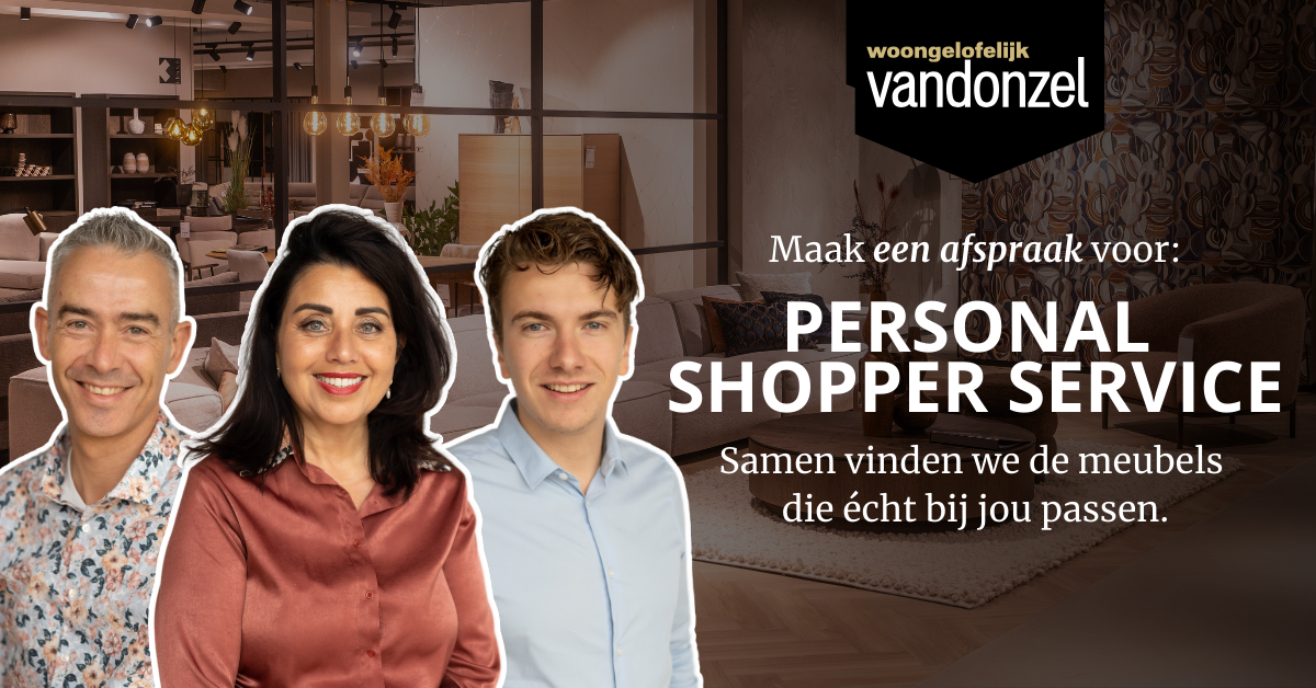 Met onze gratis Personal Shopper Service helpen we je persoonlijk bij het kiezen van je meubels, kleuren en materialen die passen bij jouw smaak, ruimte en budget.