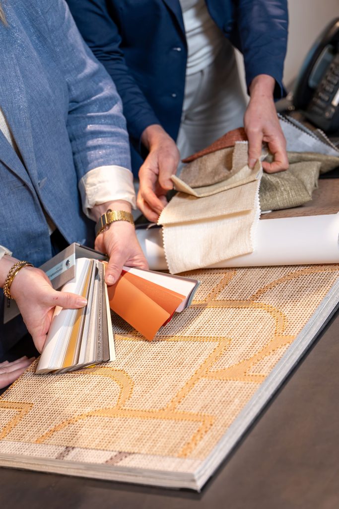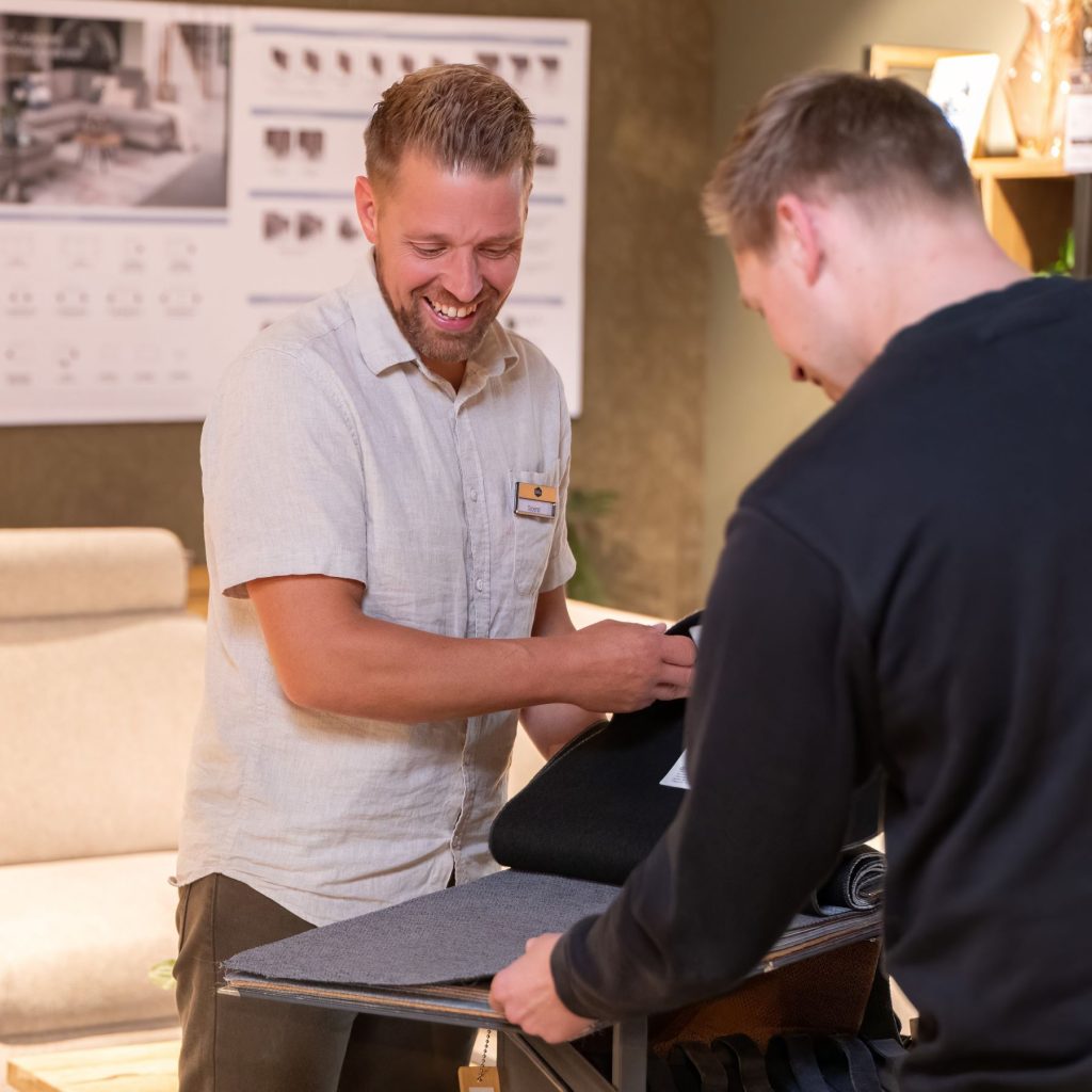 Je kunt de stoffen voelen, kleuren vergelijken en natuurlijk zelf het comfort van de meubels testen.