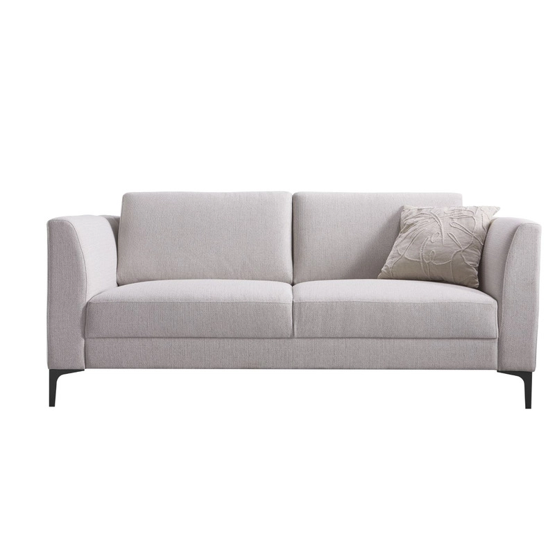 Moderne 2,5 zitsbank Gulnare in beige weefstofLosse rugkussensZelf samen te stellenUitstekend zitcomfort: HR-schuimModerne zwart metalen potenGulnare is een ranke, strak vormgegeven 2,5 zitsbank die zich in vrijwel ieder interieur thuis voelt. De bank is bekleed met een beige gemêleerde weefstof. Door het gebruik van verschillende garens en tinten beige en lichtbruin, ontstaat een geweven structuur die zacht aanvoelt en de bank een elegante, warme uitstraling geeft. De zwart metalen poten zijn 15 cm hoog en maken de bank helemaal af.In 2,5 zitsbank Gulnare is het heerlijk zitten. De armleuning is wat hoger, waardoor deze goede steun geeft. Deze uitvoering is voorzien van HR-schuim in zowel de zitting als de rug. HR-schuim heeft een hoog herstellend vermogen en een hoge veerkracht. Hierdoor behoudt de zitting langdurig zijn vorm en comfort.Online is deze bank in deze stof ook verkrijgbaar met polyether schuim in de zitting en als 2 of 3 zitsbank. Zoek je een wat grotere hoekbank? Dan vind je bank Gulnare in een grijze weefstof ook in onze webshop.Spreekt de Gulnare jou wel helemaal aan, maar wil je liever een andere opstelling of kleur? Dat kan! Van een compacte 2 zitsbank tot een grote leefhoek in één van de vele verschillende stoffen en kleuren uit ons stoffenconcept, in de winkel kun je met deze bank alle kanten op. Ook kun je kiezen uit verschillende poten en zitcomforts, en bijpassende sierkussens en hoofdsteunen in dezelfde stof en kleur. Ons deskundig personeel helpt je graag bij het samenstellen van jouw perfecte bank!OnderhoudsadviesDe bank heeft losse rugkussens. Om deze goed in vorm te houden, is het belangrijk om ze regelmatig op te kloppen. Voor een gelijkmatige belasting is het goed om ze af en toe van plaats te wisselen. De zitkussens zitten vast.