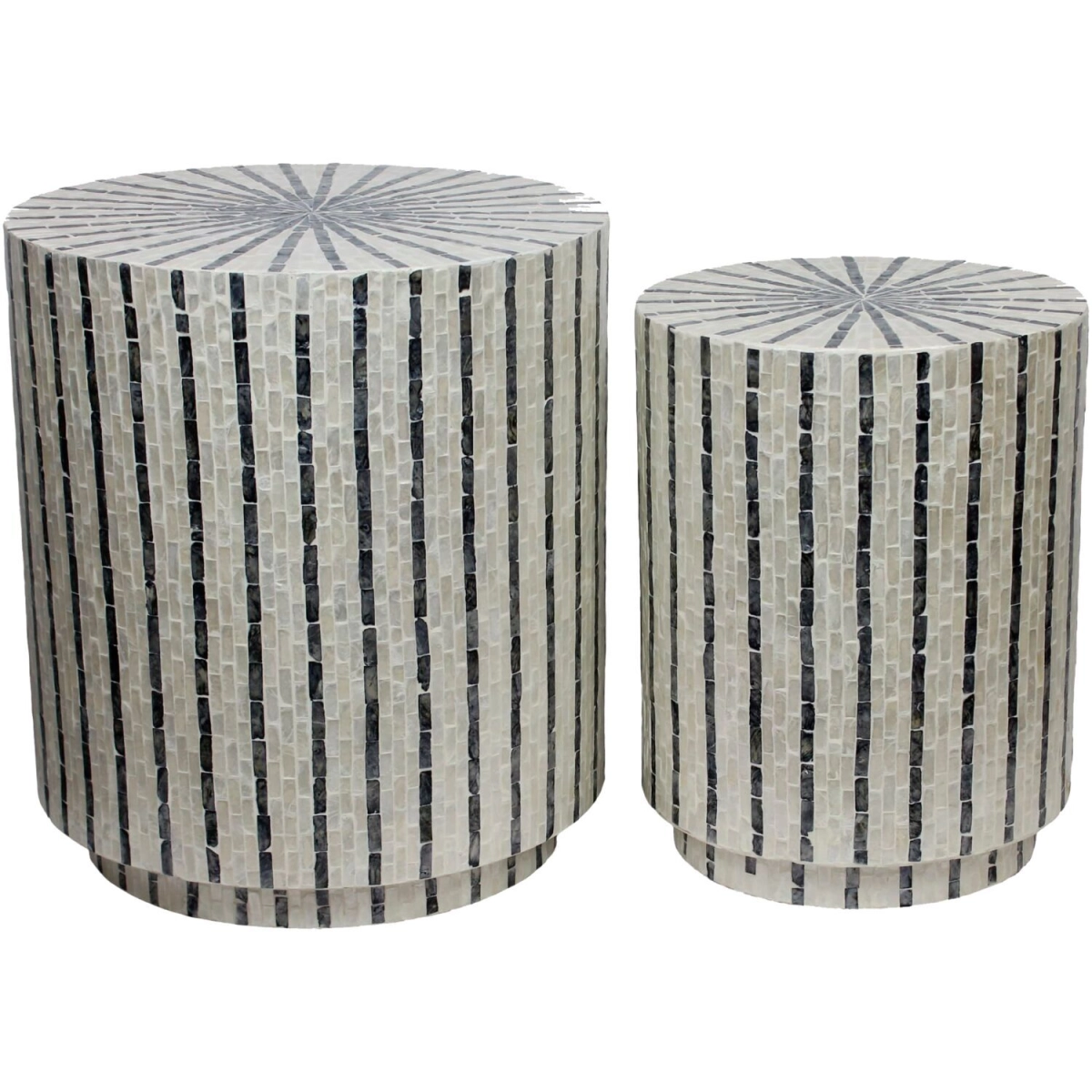 Set van 2 bijzettafels in tegelvormGeef je interieur een kleurrijk en speels accent met deze set van 2 bijzettafels. De kleine tegelvormpjes in groen, grijs, blauw en zwart maken de tafels uniek en stijlvol, terwijl het compacte formaat ze veelzijdig inzetbaar maakt in elke ruimte. Perfect als extra tafel of decoratief element in je woonkamer.