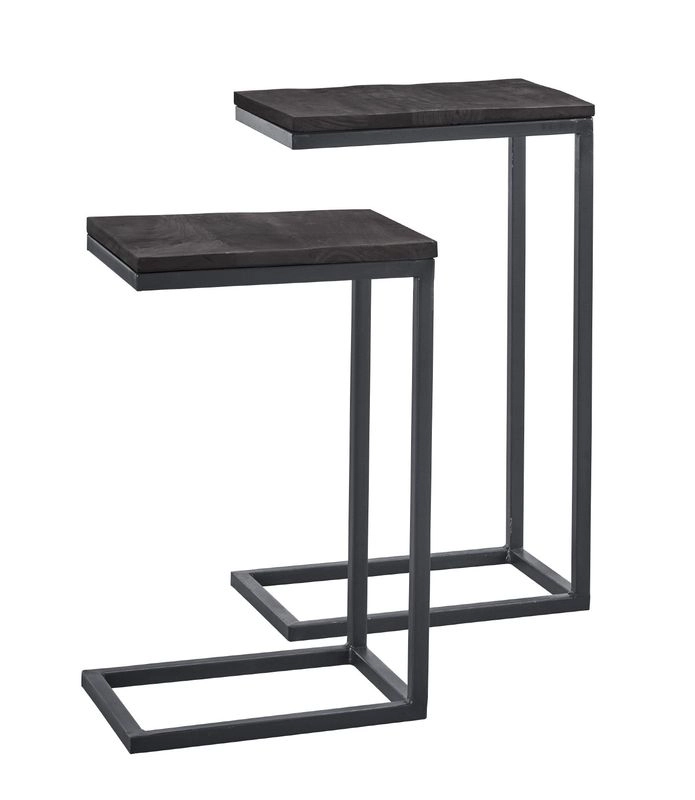 Bijzettafelset van mangohout in kleur zwart met metalen frame Gemaakt van massief duurzaam mangohout Industriële, moderne uitstraling door het metalen frame Set van 2 tafeltjes Voor dit artikel geldt OP=OP Deze salontafelset bestaat uit twee tafeltjes. De grote variant is (hxbxd) 69x31x44 cm. De kleine variant is (hxbxd) 65x27x40. Het blad is gemaakt van massief mangohout in zwarte kleurstelling. Het is geschaafd, maar heeft een duidelijke tekening en kent veel kleurschakeringen. Dit is dan ook juist wat dit materiaal zo bijzonder maakt. Daarnaast kan hij ook wel tegen een stootje en schreeuwt 'hier mag geleefd worden!'. Het zijn handige tafeltjes om naast je bank of fauteuil te zetten, voor een glas drinken. Je pakt ze makkelijk op en zet ze zo ergens anders weer neer.