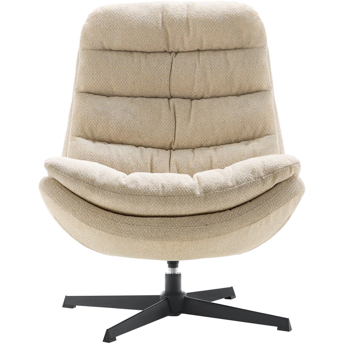 Draaifauteuil Baray is bekleed met een prachtige beige weefstof. Deze stof straalt warmte en comfort uit en maakt van deze fauteuil een trendy eyecatcher in je interieur. Voor een speels effect is de stoel volledig voorzien van mooie sierstiksels, op zowel de rugleuning als de zitting. De zwart metalen 4-teensvoet geeft een moderne uitstraling aan fauteuil Baray.