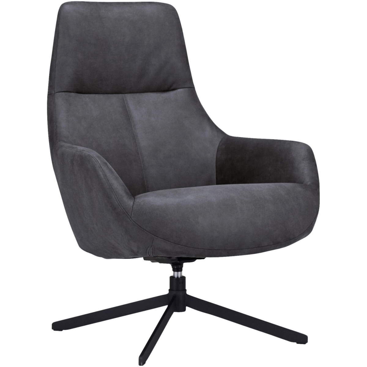 Elegante draaifauteuil in donker grijs microleder360° draaibaarUitgevoerd in microlederZwart metalen 4-teens draaipootTe belasten tot 125 kgDeze elegante fauteuil is uitgevoerd in donker grijs microleder, dit is een samengestelde bekleding bestaande uit een stevige onderlaag van leer en een toplaag van microvezelstof. Dit heeft een luxe, wat stoerdere uitstraling, en voelt toch lekker zacht aan.De draaifauteuil is voorzien van polyetherschuim in de zitting en rug, dit zorgt voor een wat steviger zitcomfort. Door zijn ronde vormen in combinatie met de zwart metalen 4-teens draaipoot past deze draaifauteuil in menig interieur. De draaifauteuil is ook verkrijgbaar in andere uitvoeringen in dezelfde stof in een andere kleur, of in microleder. Vraag in de winkel naar de mogelijkheden.OnderhoudsadviesVoor het onderhoud van deze fauteuil adviseren we de Textile & Leather protector. Dit beschermt tegen vlekken op basis van water, vet of olie. Na behandeling met de spray kunnen vloeistoffen met een goed absorberende tissue opgedept worden.