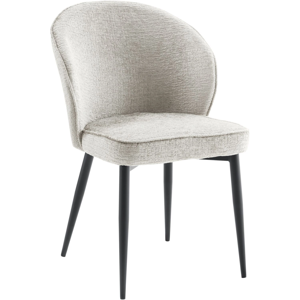 Elegante eetkamerstoel Kula in lichtgrijs Zwart metalen frame Afgewerkt met een fraaie bies Te belasten tot 120 kg In diverse kleuren verkrijgbaar Eetkamerstoel Kula heeft een chique uitstraling door de glanzende stof waarin hij uitgevoerd is. Deze chenille stof Fusion voelt heerlijk zacht aan en heeft een licht 3d-effect. De stoel is uitgevoerd in de kleur lichtgrijs, maar is ook verkrijgbaar in antraciet en lichtbruin. Kula is afgewerkt met een mooie bies voor een unieke look.Kula is naast stijlvol ook erg comfortabel. De rugleuning van de stoel loopt rond af, waardoor deze je rug omsluit. De zitting is stevig en comfortabel dik. Dit zorgt voor een goede ondersteuning en een rechte zit.Stoel Kula wordt ongemonteerd geleverd, dit betekent dat je deze zelf nog dient te monteren. Er is een handige montagehandleiding beschikbaar. De maximale belastbaarheid van deze stoel is 120 kg.OnderhoudsadviesVoor het onderhoud van deze stoel adviseren we de Textile & Leather protector. Dit beschermt tegen vlekken op basis van water, vet of olie. Na behandeling met de spray kunnen vloeistoffen met een goed absorberende tissue opgedept worden.
