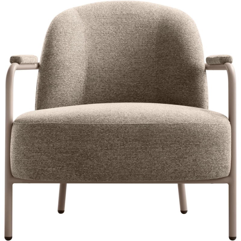 Fauteuil Galesse heeft een moderne, zachte uitstraling door het grijze metalen frame en taupekleurige stof. De fauteuil is bekleed met een taupekleurige weefstof. Fauteuil Galesse wordt gemonteerd geleverd, zodat jij hem gelijk een plekje kan geven in je interieur.