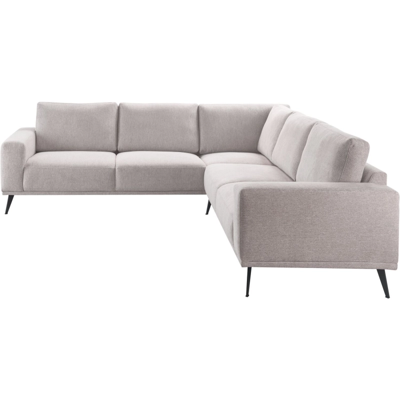 Lichtgrijze trendy hoekbank Lindon Uitgevoerd in een gemêleerde stof Losse, keerbare rugkussens Zelf samen te stellen Standaard zitcomfort: polyether op nosagveren Hoekbank Lindon heeft door de strakke, kubistische vormen en zwart metalen poten een stoere, moderne uitstraling die eigenlijk in ieder interieur wel past. De bank is uitgevoerd in de lichtgrijze stof Mito. Deze licht meerkleurige kwaliteit heeft een wat grovere structuur, maar wel een erg zachte touch.Deze uitvoering van bank Lindon is voorzien van polyether op nosagveren in de zitting. Dit zorgt voor een stevige zit en een goede ondersteuning. De rugkussens hebben een wat zachter comfort.Online is de hoekbank ook verkrijgbaar met een ander zitcomfort. Ben je helemaal weg van dit model, maar past in jouw woonkamer beter een kleinere bank? Of wil je een andere stof of kleur? Ook dat is mogelijk!In de winkel is model Lindon verkrijgbaar in vele verschillende opstellingen en soorten bekleding, zo stel je je bank helemaal naar wens samen. Daarnaast kun je kiezen uit diverse zitcomforts zodat je het comfort kan afstemmen op je eigen wens. Voor extra comfort zijn er verschillende afmetingen sierkussens en hoofdsteunen beschikbaar in dezelfde of bijpassende stof of kleur. Dat maakt jouw bank helemaal af! Kom naar onze winkel en ontdek alle mogelijkheden.OnderhoudDe bank heeft losse rugkussens. Om deze goed in vorm te houden, is het belangrijk om ze regelmatig op te kloppen. De rugkussens zijn ook keerbaar; voor een gelijkmatige belasting is het goed om ze af en toe van plaats te wisselen en ze om te keren. De zitkussens zitten vast. Voor het onderhoud van bank Lindon adviseren we de Textile &¿Leather¿protector. Dit beschermt tegen vlekken op basis van water, vet of olie. Na behandeling met de spray kunnen vloeistoffen met een goed absorberende tissue opgedept worden. Gebruik om je vloer te beschermen een viltstrook.