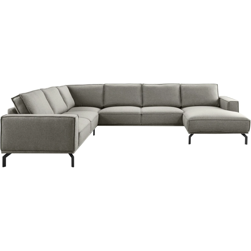 2,5 zits arm links + hoek + 2,5 zits zonder armen + chaise longue arm rechts, uitgevoerd in stof abba 13-khaki met HR-koudschuim in de zitting, mix van polyetherschuim- en siliconenvlokken in de rug en zwarte metalen poten hoogte 17 cm.