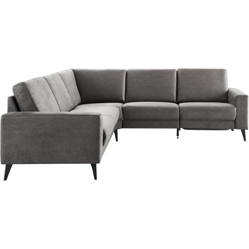 2,5 zits arm links + hoek klein afgeschuind + 1,5 zits (70) zonder armen + 1,5 zits (70) ar, uitgevoerd in microleder bull 67-antraciet, met arm A, voorregel, hoge rug, polyetherschuim met een bovenlaag van HR-koudschuim in de zitting, mixvulling van HR-koudschuim, polyetherschuim- en siliconenvlokken in de rug en zwarte metalen poten (201K).