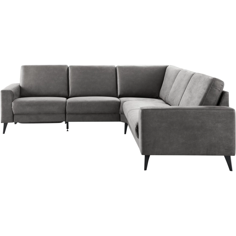 1,5 zits (70) al + 1,5 zits (70) zonder armen + hoek klein afgeschuind + 2,5 zits arm rechts, uitgevoerd in microleder bull 67-antraciet, met arm A, voorregel, hoge rug, polyetherschuim met een bovenlaag van HR-koudschuim in de zitting, mixvulling van HR-koudschuim, polyetherschuim- en siliconenvlokken in de rug en zwarte metalen poten (201K).
