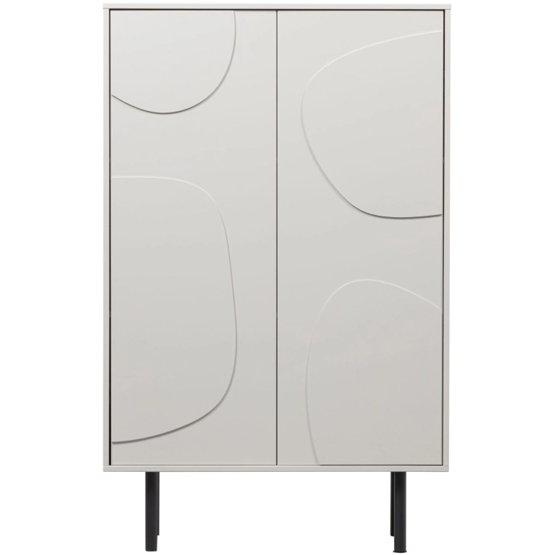 Opbergkast Atri heeft een clean design, speels houtpatroon en een sprekend kleurcontrast. De mistwitte afwerking houdt het ontwerp stijlvol en modern met als spannende tegenhanger de stoere, stevige zwarte poten. Kortom, een echte eyecatcher voor in je interieur! De kast is gemaakt van grenenhout.