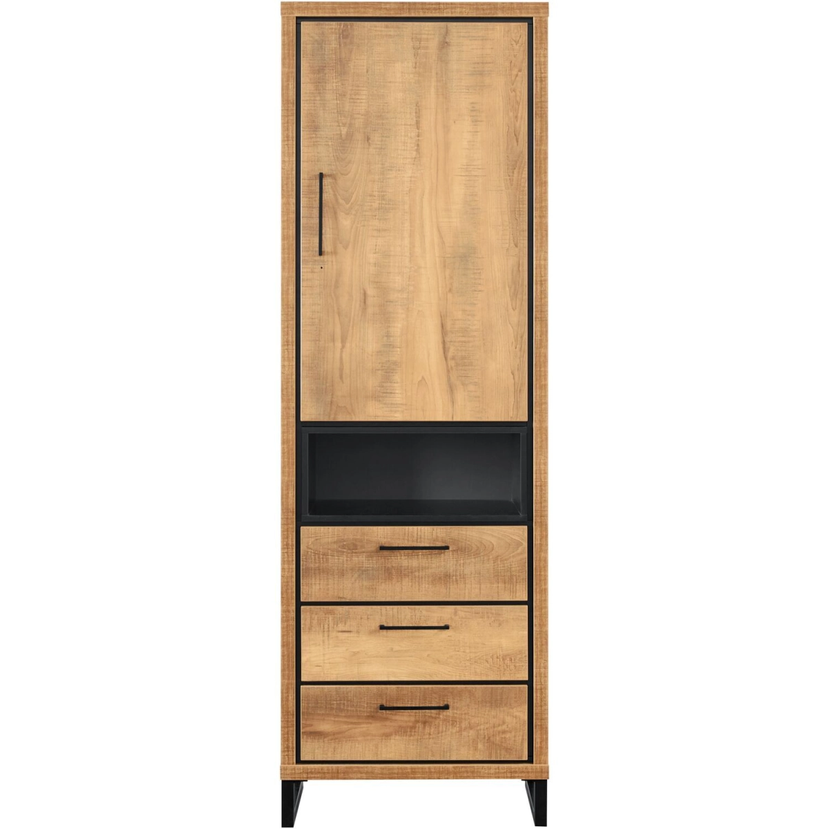 Opbergkast Imbaro 65 cm breed met mango decor Zeer kras-, slijt-, en stootvast Met 1 deur, 3 lades, en 1 open vak Onderdeel van een woonserie Zelf te monteren Maak kennis met onze veelzijdige woonserie Imbaro. Deze collectie omvat verschillende kasten, zoals dressoirs, tv-meubels en handige opbergkasten, waarmee je een stijlvolle leefruimte kunt inrichten. De keuze voor melamine garandeert duurzaamheid en eenvoudig onderhoud. Hoewel melamine eruitziet als echt hout, is het een uiterst kras-, slijtage- en schokbestendig materiaal, wat het zeer gebruiksvriendelijk maakt. De meubels in deze serie zijn voorzien van een mango decor en hebben een modern zwart metalen frame.Maximaliseer de functionaliteit van jouw ruimte met deze opbergkast, voorzien van 1 deur, 3 lades en een open vak. De deur en lades zijn uitgerust met softclose technologie voor een stille sluiting. De praktische indeling bevat 2 legplanken achter de deur, waardoor de opbergkast niet alleen stijlvol maar ook zeer functioneel is.Het meubel wordt ongemonteerd geleverd, maar is met behulp van een montagehandleiding eenvoudig in elkaar te zetten.De opbergkast is perfect te combineren met andere meubelen uit de serie Imbaro en de eettafels uit de serie Caltana.OnderhoudsadviesHet onderhoud van dit meubel is heel eenvoudig. Voor het gewone onderhoud volstaat afnemen met een licht vochtige doek, droog het meubel daarna direct na met een schone en droge doek. Bij onvoldoende resultaat of hardnekkige vlekken kun je voor deze meubelserie de Multi Cleaner gebruiken.
