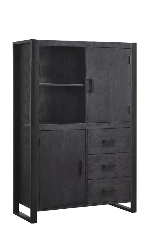 Opbergkast in mangohout met gecoat staal Stoer en veelzijdig karakter 2 deuren, 3 laden en 2 open vakken Kleur: Zwart met zwart metalen frame Voorgemonteerd Onderdeel van een meubelserie Dit meubelstuk is volledig handmatig vervaardigd uit massief mangohout. Meubelen uit mangohout zijn zeer duurzaam en milieuvriendelijk, omdat het hout een bijproduct is dat verwerkt wordt als de boom geen vruchten meer draagt. Geen enkele meubel is gelijkwaardig van vorm, structuur of kleur. De zichtbare geslepen lasnaden en ruwe afwerking geven je meubel een specifieke industriële look. Newhaven is een kwestie van combineren en creëren! De opbergkast heeft een stoer en veelzijdig karakter, de kleur is zwart met een zwart metalen frame. De kast heeft 2 deuren, 3 laden en 2 open vakken. De kast is voorgemonteerd. Daarnaast is het goed te combineren met de andere meubels uit de serie van Newhaven. Onderhoudsadvies zwarte meubelen: Greenfix black