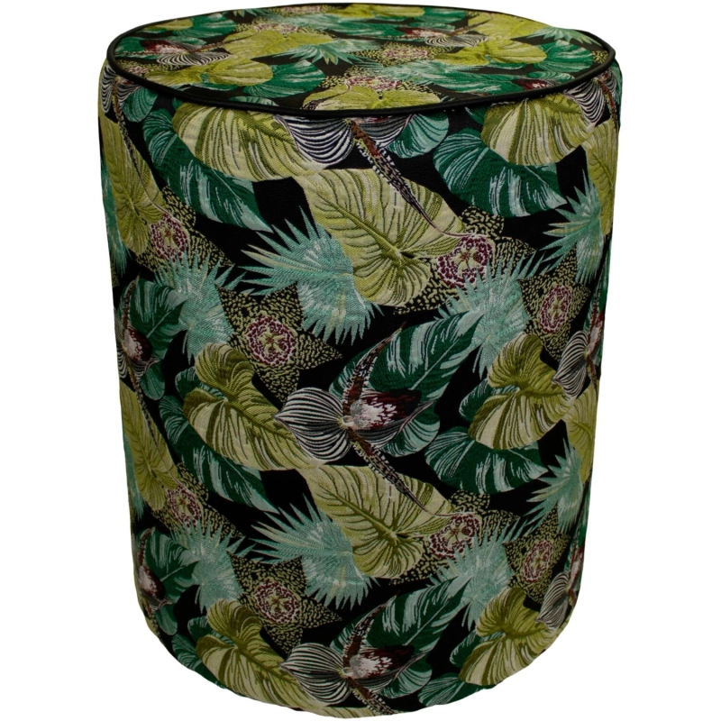 Op zoek naar een echte blikvanger in je interieur? Deze poef met groene bladerenprint geeft je woonruimte direct een levendige uitstraling. De print zorgt voor een speels accent en brengt op subtiele wijze een natuurlijk element in huis.