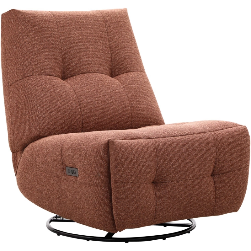 Elektrisch verstelbaar, uitgevoerd in stof majestic weave coral met zwart metalen ronde draaivoet.