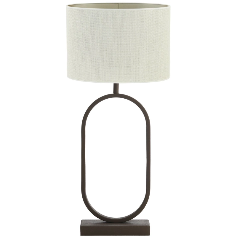 Uitgevoerd in de kleur bruin met een ovale kap in de kleur wit. Geschikt voor maximaal 40 watt. Fitting: E27 (grote fitting).