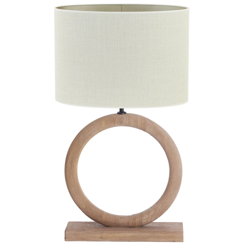 Uitgevoerd in de kleur hout mat naturel met een ovale kap in de kleur egg white. Geschikt voor maximaal 25 watt. Fitting: E27 (grote fitting).