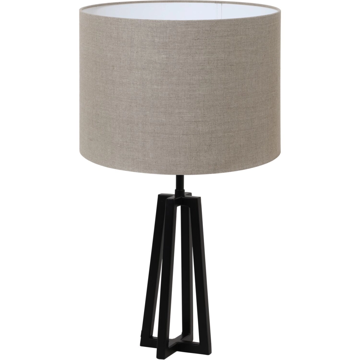 Uitgevoerd in de kleur mat zwart met een ronde kap in de kleur linen. Geschikt voor maximaal 40 watt. Fitting: E27 (grote fitting).
