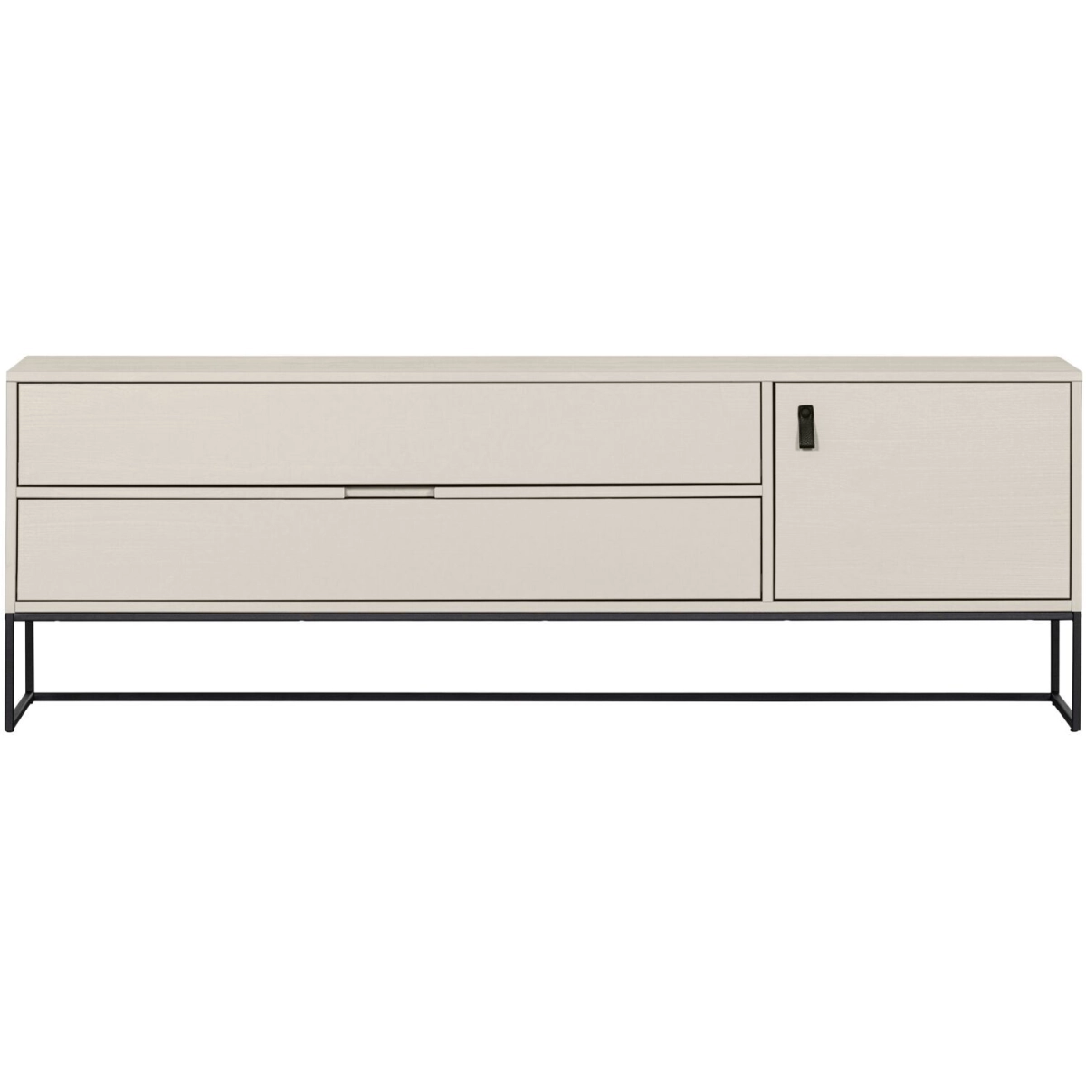 TV-meubel Albie is 180 cm breed, en heeft twee lades met een breedte van 121 cm en een hoogte van 13 cm. Het kastje aan de rechterzijde beschikt over één legplank en wordt afgesloten met een deur met leren handgreep. Dit meubel is voorzien van een gat voor kabels, bedrading en dergelijke. Wel zo praktisch! De deuren en lades zijn voorzien van softclose.