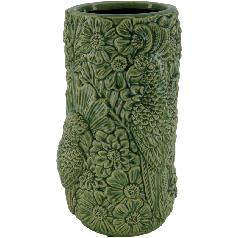 Uitgevoerd in donkegroen met vogels en bloemen