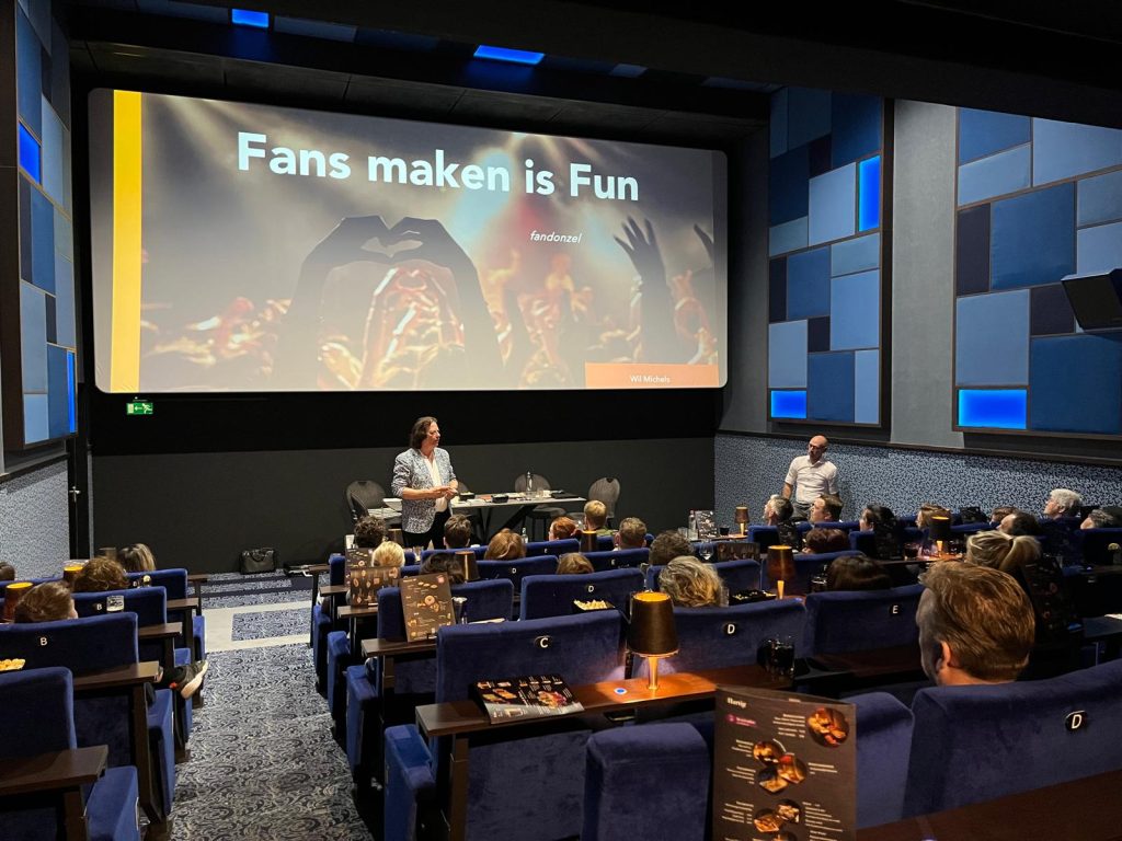 Op een avond in maart kwam het voltallige team bij elkaar in Take Ten, een bioscoop in Uden, voor de première van THEATERPRAAT. Alle vragen die vooraf, eventueel anoniem, ingezonden waren, kwamen op het witte doek voorbij. Met ons hele team in de bioscoopstoelen en het MT net voor het scherm werden alle vragen oprecht, eerlijk en zo transparant als mogelijk beantwoord. Hoewel we bij ons spreken van een platte organisatiestructuur, kozen we ervoor om de medewerkers in theateropstelling letterlijk boven het MT te plaatsen om zo hun stem te versterken. De vragen werden onderverdeeld en besproken in drie categorieën: visie en toekomst, arbeidszaken en cultuur. Of het nu een korte vraag was, zoals ‘Waarom komt ons vakantiegeld in juni?’ of uitgebreide vragen over visie, toekomstplannen en communicatie onderling, er volgde altijd een verdiepend gesprek.