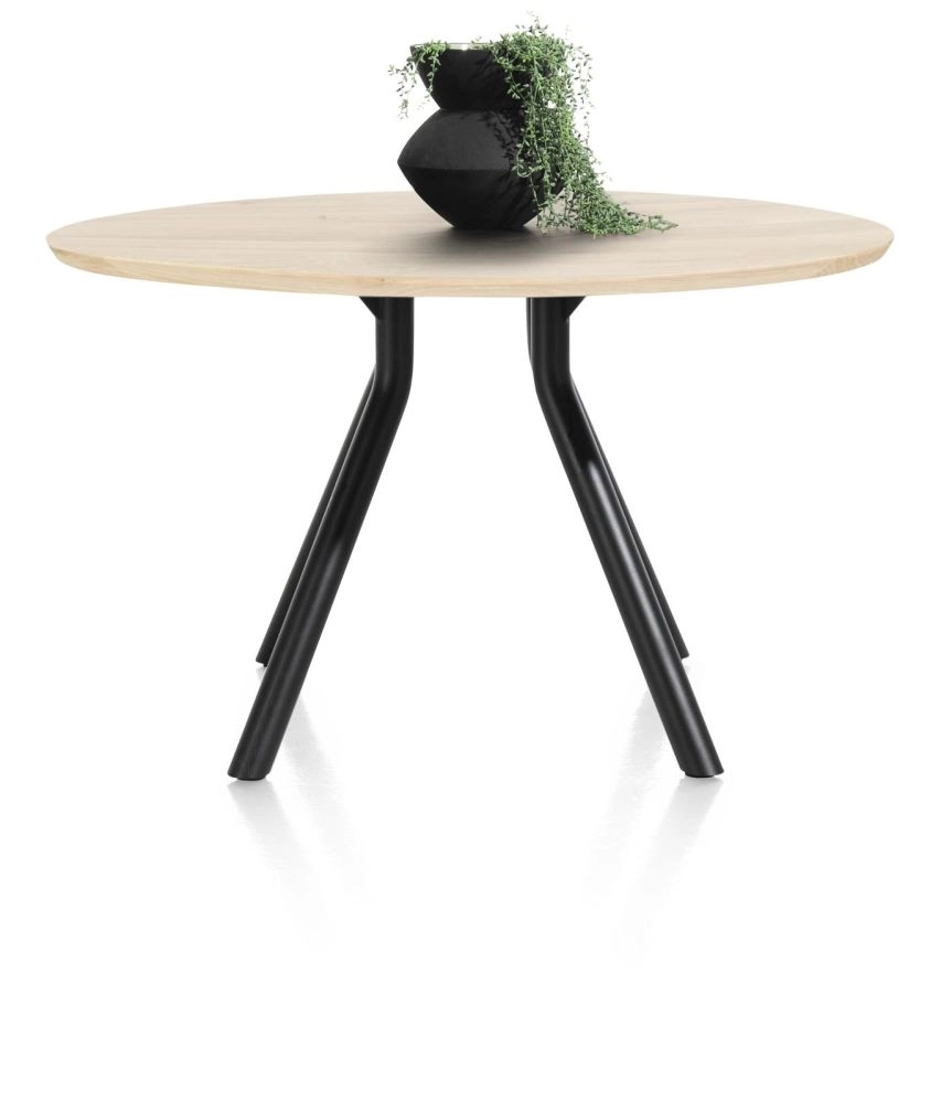 Een massief eikenhouten blad; ronde zwart metalen poten; en de mogelijkheid om zelf jouw ideale tafel samen te stellen. ARVADA biedt het allemaal. Ga je voor een blad in de kleur naturel of past het donkere onyx het beste in jouw interieur? Wat je ook kiest, deze ronde tafel met een diameter van maar liefst 140 cm wordt dé eyecatcher van jouw kamer! Ook verkrijgbaar in een maatje kleiner.