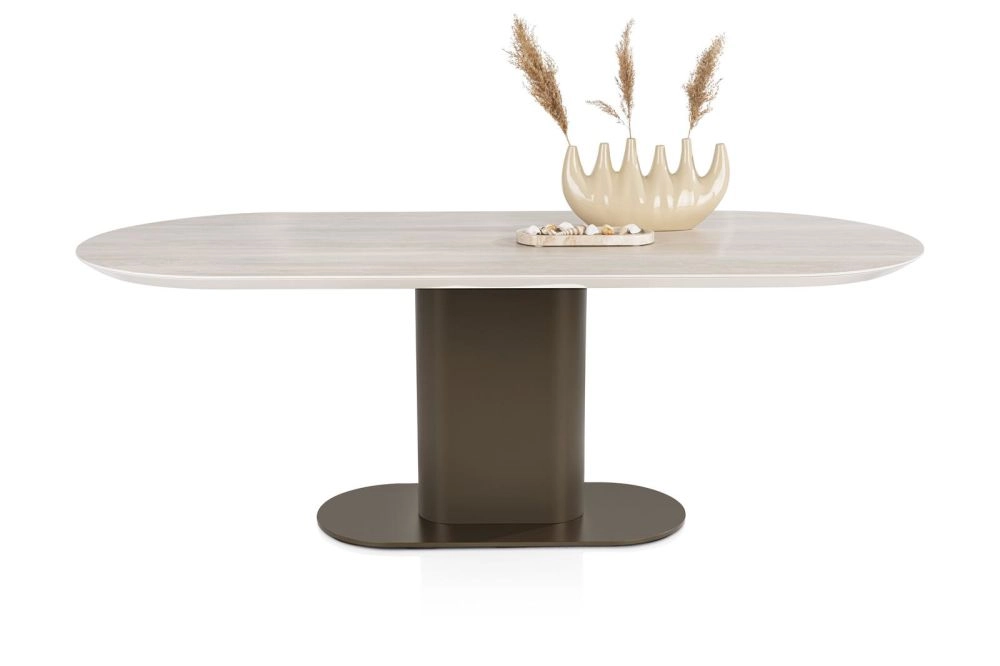 Brianto, eetkamertafel 240 x 100 cm - keramiek blad Travertin - Steel Brown