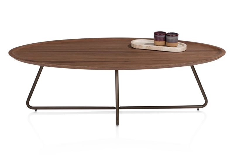 Breng de elegante uitstraling van de BRIANZA collectie ook naar je zithoek met salontafel BRIANZA. Het blad is uitgevoerd in luxe notenfineer en benadrukt de warme, stijlvolle look die kenmerkend is voor deze serie. De verjongde rand geeft de tafel een luchtige uitstraling, terwijl het ranke metalen draadframe zorgt voor een eigentijdse twist en een stabiele basis. Deze combinatie van warme houtlook en modern metaal maakt de salontafel zowel functioneel als stijlvol. Combineer hem met de bijpassende bijzettafel voor een harmonieus geheel. En met de BRIANZA spiegel maak je de notenhoutlook in je interieur helemaal compleet.