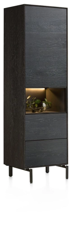 Elements, bergkast smal - 60 cm. - 1-deur + 2-laden + 1-niche + led incl. metalen poten - Onyx