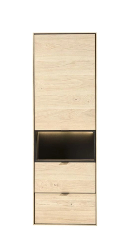 Elements, bergkast smal - 60 cm. - 1-deur + 2-laden + 1-niche + led - natural
