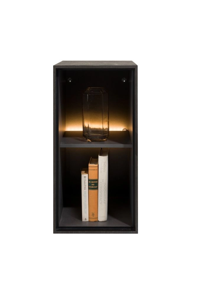Elements, box 60 x 30 cm. - hout - hang + 2-niches + led - Onyx