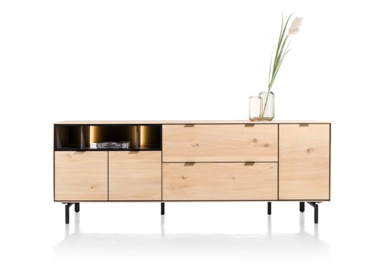 Elements, dressoir 210 cm. - 3-deuren + 2-laden + 3-niches + led incl. metalen poten - natural