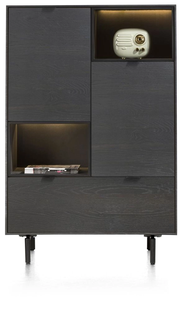 Elements, highboard 90 cm. - 2-deuren + 1-lade + 2-niches + led incl. metalen poten - Onyx