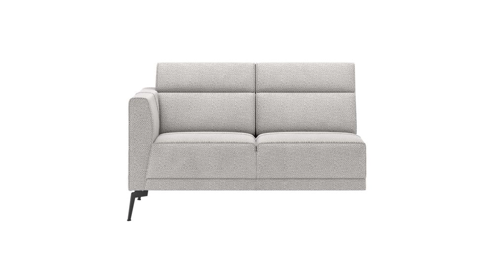 Een strakke 2-zits bank met een uniek design; dát is 2-zits FISKARDO. De siernaden maken deze bank extra opvallend in combinatie met zijn ranke, zwart metalen onderstel. Het onderstel is slank en tegelijk bijzonder omdat het omhoog doorloopt rondom de zijkanten van de bank. FISKARDO is in verschillende maten beschikbaar. Deze 2-zits small met arm links vormt de perfecte basis om jouw eigen FISKARDO hoekbank samen te stellen.